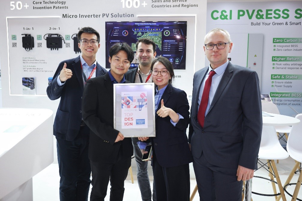 波兰ENEX展会期间,华昱欣科技荣获展会主办Targi Kielce SA颁发的“TOP DESIGN”(展台最佳设计奖)。其展台设计将未来感光线与绿色能源巧妙地融合在一起,呈现了高科技、可持续的绿色未来。华昱欣科技始终坚持以创新驱动,该奖项再次证明了华昱欣的承诺与创新实力。