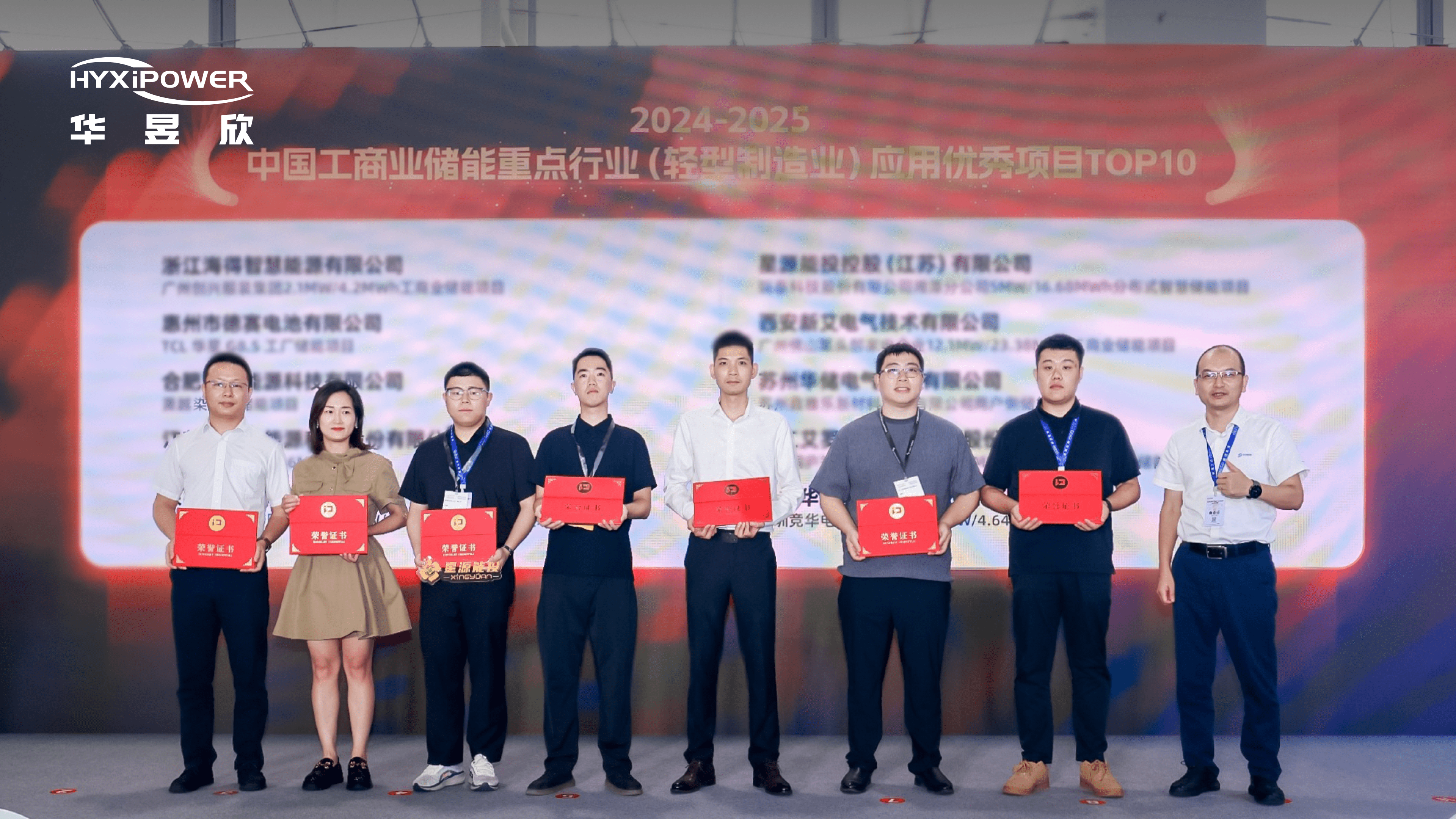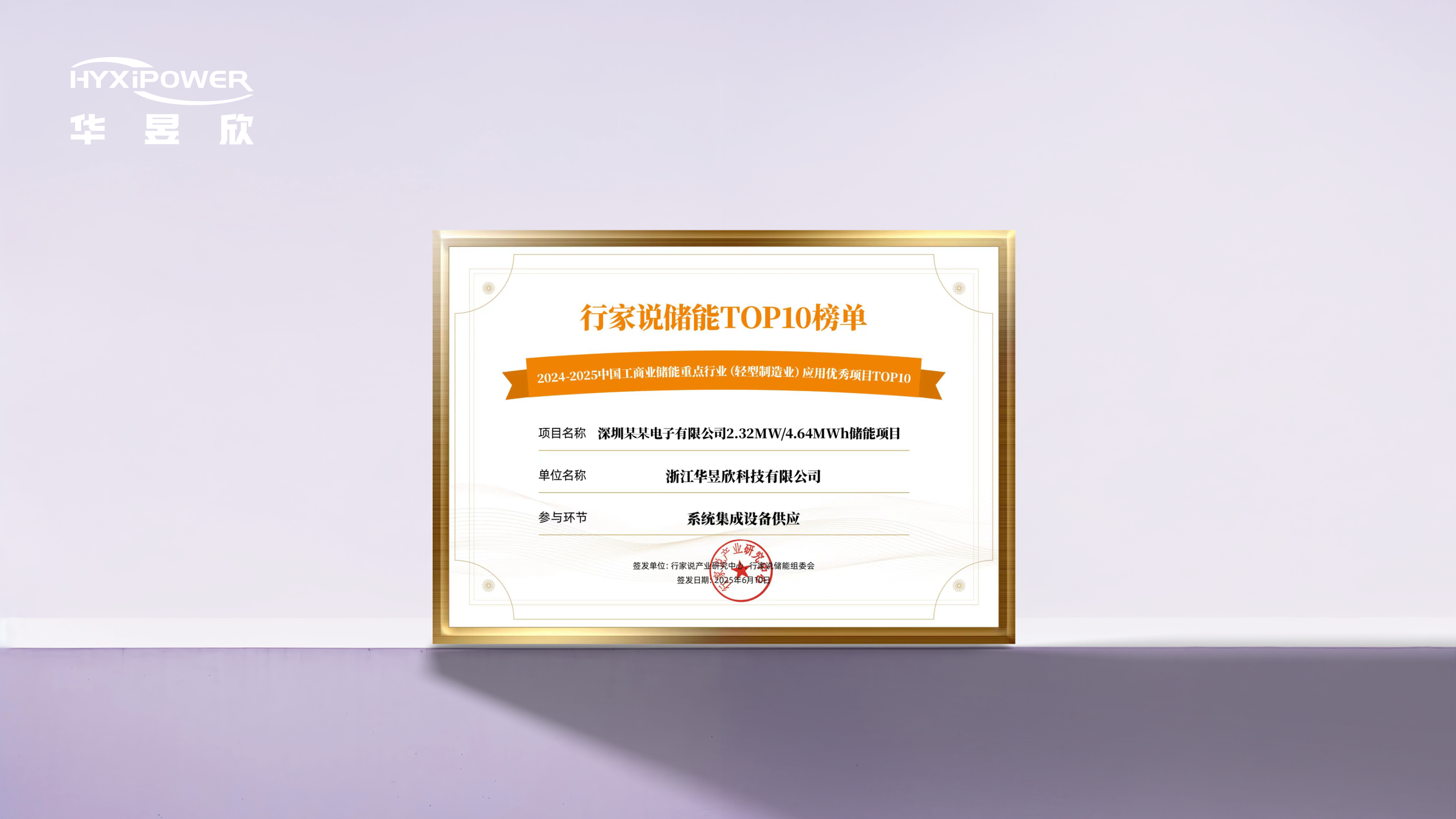 华昱欣荣获“2024-2025中国工商业储能重点行业(轻型制造业)应用优秀项目TOP10”