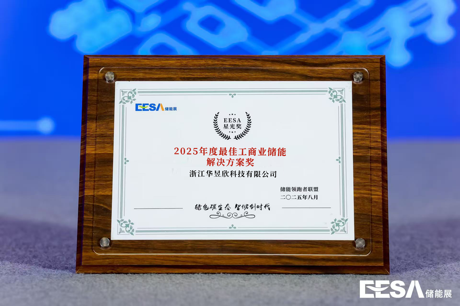 华昱欣荣获EESA星光奖“2025年度最佳工商业储能解决方案奖”