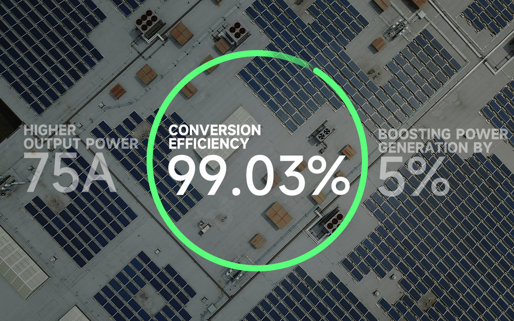 • 开关损耗降低14%,转化效率99.03%